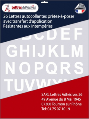 SARL Lettres Adhésives 26 accompagne depuis 2013 les particuliers et les professionnels dans la création d’adhésifs décoratifs et publicitaires. Basée dans la Drôme, notre entreprise familiale conçoit, découpe et expédie chaque commande depuis son atelier, avec la même exigence de qualité.