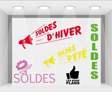 • Le sticker c'est la reprise sera idéal pour les fêtes et événements annuels en décoration sur une vitrine, une enseigne de magasin ou un panneau publicitaire. Il est très utilisé en période de soldes pour l'affichage des soldes et la publicité sur les vitrines des magasins par tous les commerçants, pour une communication publicitaire efficace.