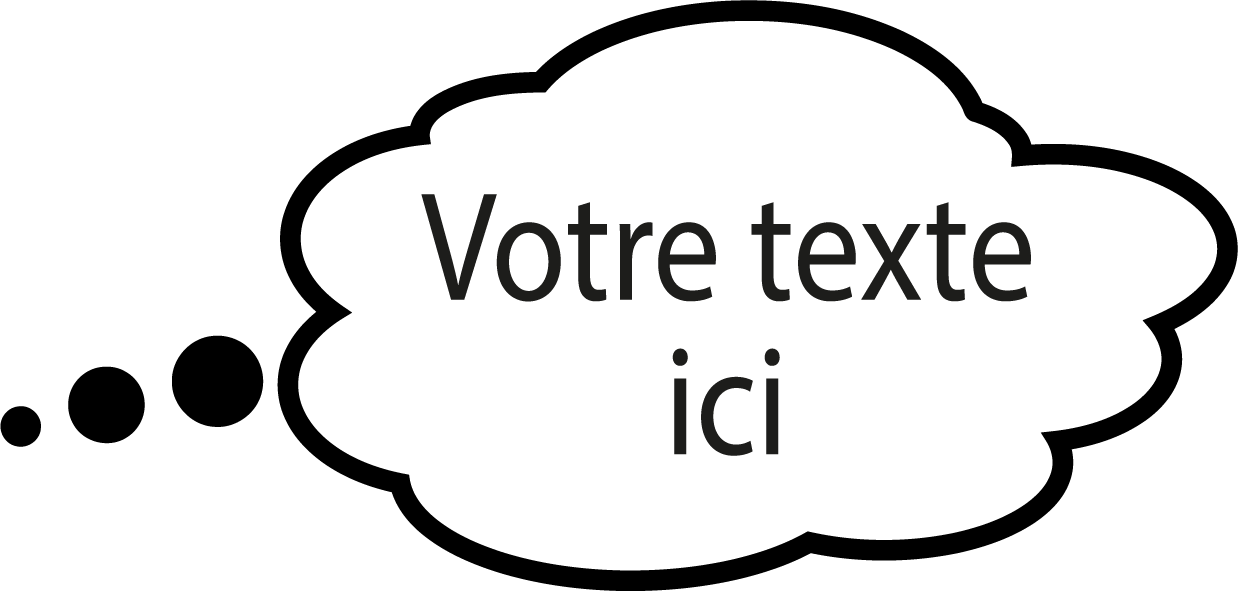 Personnaliser simplement cette bulle de pensée, couleurs et dimensions. Si vous souhaitez insérer un texte sur ce sticker, utilisez le bouton + de personnalisation.